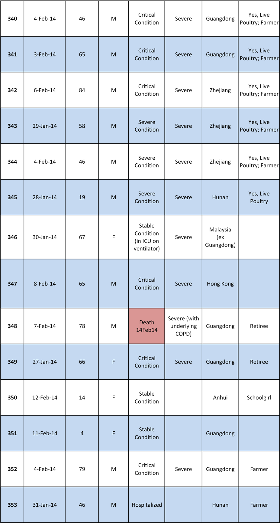 Human H7N9 Cases